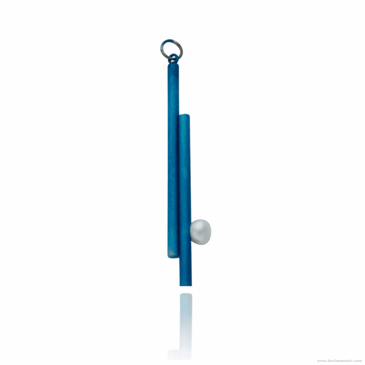 Colgante doble de titanio azul hecho a mano con una perla cultivada en agua dulce.
