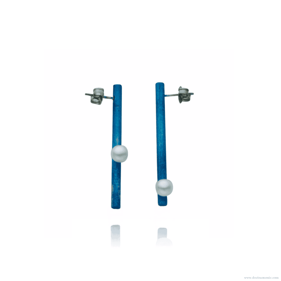 Pendientes de titanio de barra larga hechos a mano con perlas cultivadas de agua dulce y tuercas de titanio.